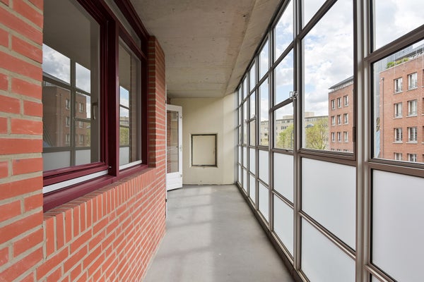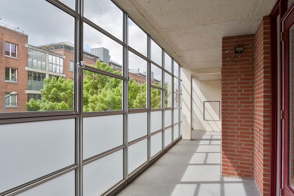 Étage : Depuis le hall central/couloir de l'étage, vous avez accès à l'appartement. Grand salon avec cuisine semi-ouverte. La cuisine est située à l'arrière de l'appartement et offre une vue sur le jardin intérieur verdoyant. À côté de la cuisine se trouve la buanderie avec les branchements pour les appareils ménagers et l'unité de ventilation mécanique. Le salon est adjacent au balcon intégré. Le balcon est orienté au sud. L'appartement dispose également de 2 chambres, d'une salle de bains et d'un WC séparé. La salle de bains est équipée d'une douche à l'italienne et d'un lavabo.