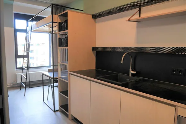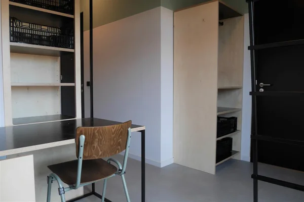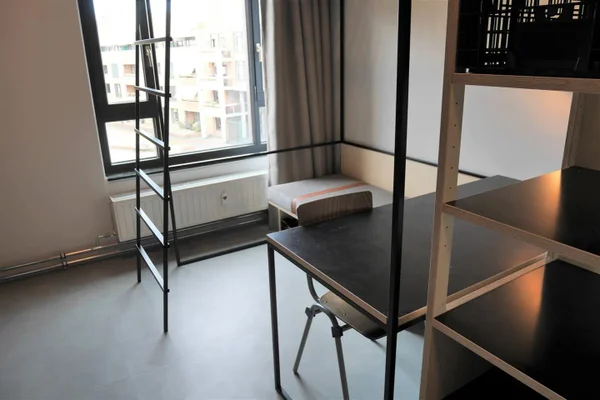 Studio luxueusement meublée dans le complexe de campus moderne 'Wauwhaus'. La studio est équipée d'un lit double (140x210cm), salle de bain moderne en suite, cuisine ouverte luxueuse (y compris appareils encastrés), grand garde-robe et espace de rangement, bureau avec chaise, canapé lounge et internet haut débit. Le studio est situé au 4ème étage (côté nord) avec vue sur le jardin intérieur. Voir le plan pour l'emplacement exact dans le complexe.