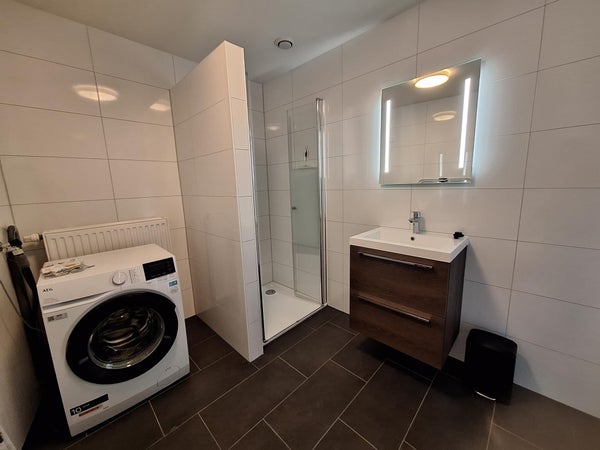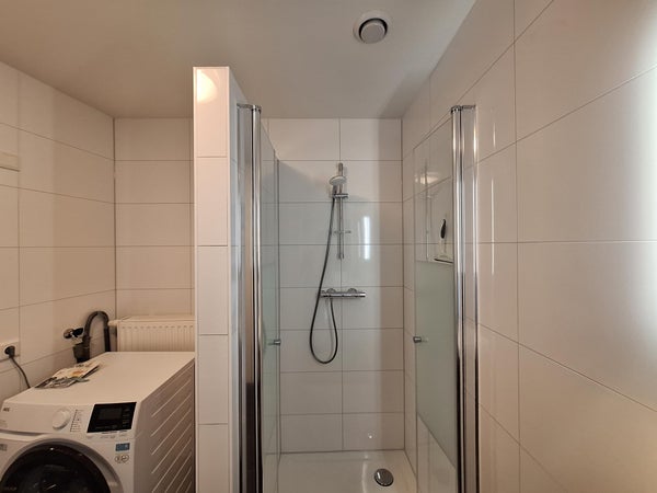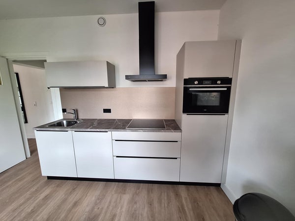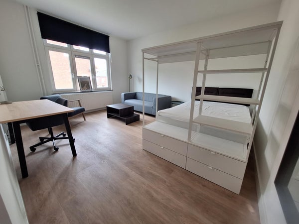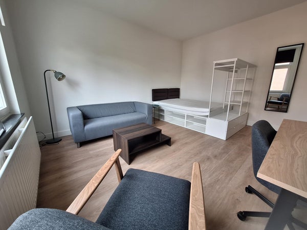 L'appartement est situé au calme à l'arrière du bâtiment au premier étage. En entrant, vous pénétrez dans un hall qui donne un accès direct à la salle de bain moderne, équipée d'une douche et de toilettes. De plus, la machine à laver se trouve ici. La cuisine luxueuse est entièrement équipée avec tout ce dont vous avez besoin : une plaque à induction, un réfrigérateur, un congélateur, un lave-vaisselle et une hotte aspirante. Par la cuisine, vous entrez dans le salon/chambre chaleureux. Grâce aux grandes fenêtres, vous profitez de beaucoup de lumière naturelle et d'une agréable sensation d'espace. La chambre est entièrement meublée et prête à emménager, avec notamment un lit confortable, un canapé cosy, une table à manger et un bureau. Tout ce dont vous avez besoin pour vivre sereinement dès le départ.