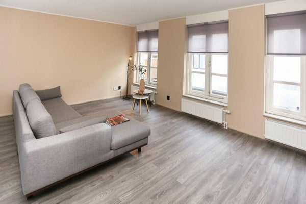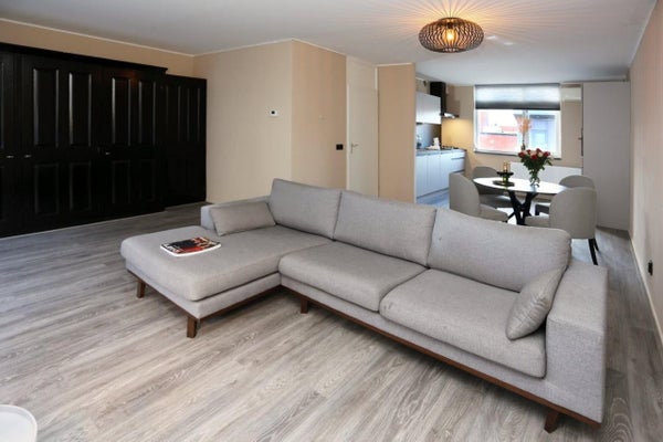 Entrée privée de l'appartement au 1er étage avec un accès direct au parking. Hall avec placard intégré et toilette avec un petit lavabo, salon lumineux et moderne avec une cuisine ouverte moderne et neuve comprenant un lave-vaisselle, un réfrigérateur/congélateur et un four. Depuis le salon, vous pouvez avoir une belle vue sur la charmante Herenstraat et le Wilhelminaplein. Vous pouvez aller prendre un verre dans l'un des établissements ou profiter d'un verre sur votre grande terrasse privée.