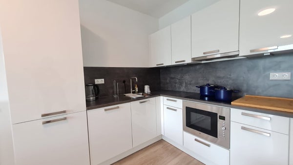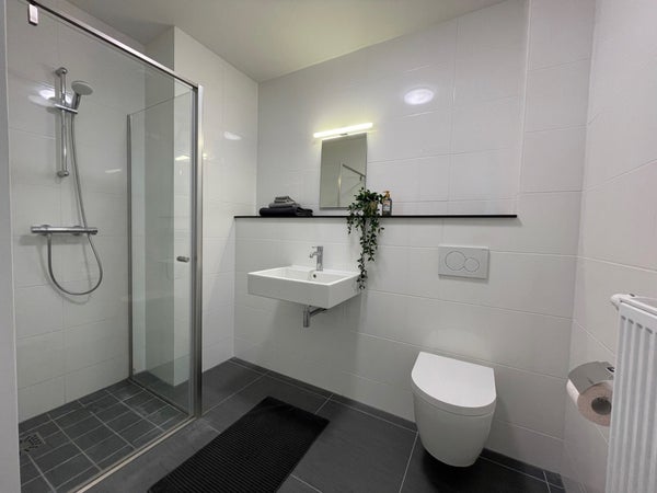 Cet appartement d'une chambre entièrement rénové est situé au troisième étage (accessible par ascenseur). La cuisine lumineuse et moderne avec les derniers appareils incorporés et un lave-vaisselle est directement accessible à l'entrée. Il y a un coin repas spacieux et un salon. Cet appartement dispose d'une chambre spacieuse avec un lit double avec matelas à ressorts ensachés, un placard et un espace de travail.