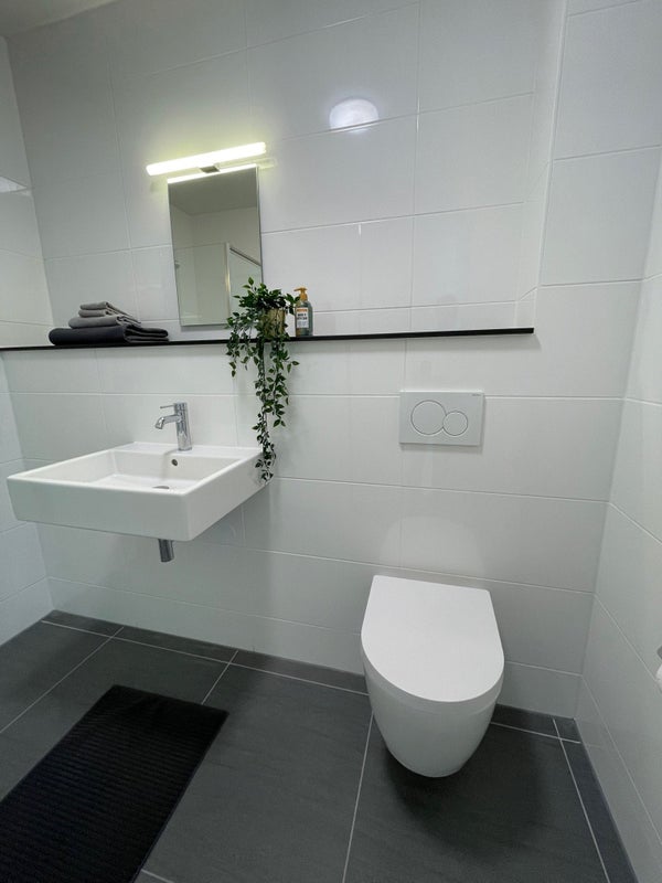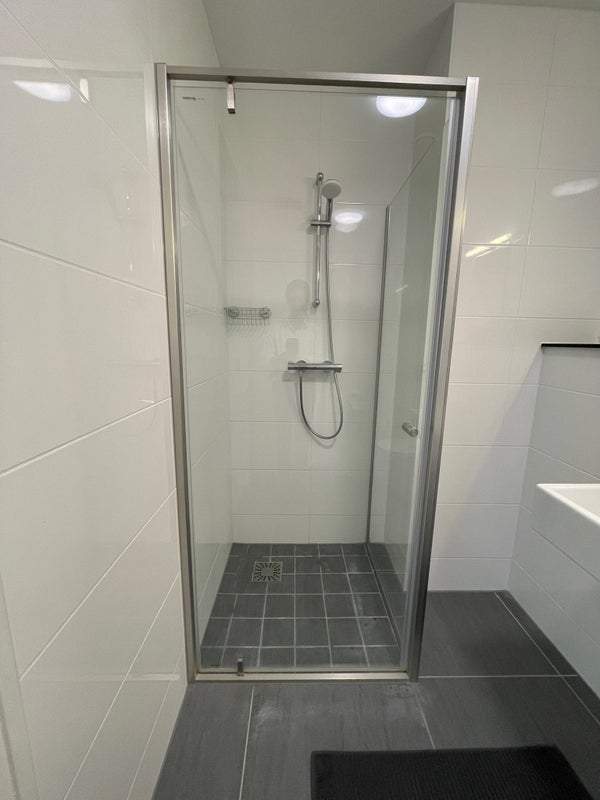 La salle de bains est dotée d'un joli lavabo moderne et d'une douche avec une nouvelle cabine. Chaque pièce est équipée d'un sol PVC clair ou de carrelage qui est résistant à l'humidité.