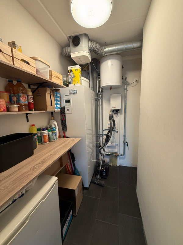 Le logement est chauffé par le sol et est économe en énergie. Grâce à l'installation de pompe à chaleur, l'appartement est chauffé de manière durable.