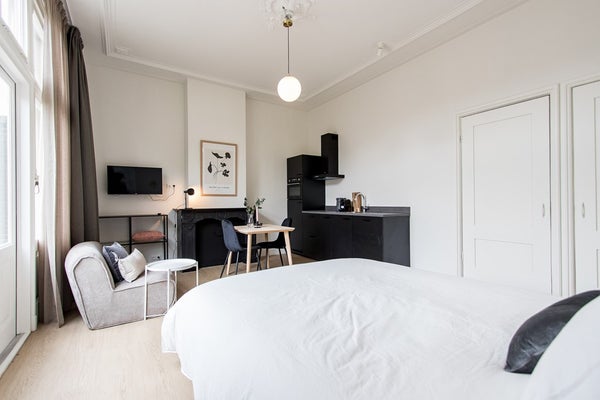 Cette magnifique et spacieuse maison est située à Nimègue sur la Kronenburgersingel. Il y a 6 appartements de courte durée tout neufs dans l'immeuble. La maison a été construite en 1897 et entièrement rénovée en 2024.
