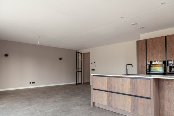 Par l'entrée, vous accédez au hall avec un placard intégré, qui vous donne accès au WC avec toilettes suspendues et lavabo, à la salle technique où se trouvent la pompe à chaleur, les connexions pour la machine à laver et le sèche-linge, 2 chambres et le salon/cuisine. Le spacieux salon avec cuisine ouverte est situé à l'avant de la maison et dispose de portes-fenêtres pour que vous puissiez accéder au jardin. La cuisine est très luxueusement équipée avec un îlot de cuisson et divers appareils électroménagers intégrés de luxe. Comme un machine à café encastrée, un four combiné et une plaque de cuisson à induction avec extraction intégrée. La salle de bains est attenante à la chambre principale et dispose d'une douche à l'italienne, de toilettes, d'une baignoire et d'un double évier. Encore une fois, d'une exécution très luxueuse.