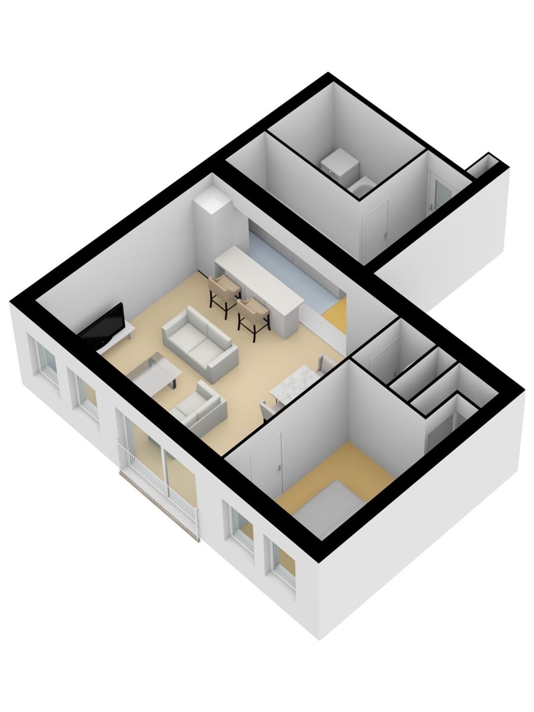 Cet appartement urbain se trouve au premier étage, à l'arrière d'un immeuble dans le centre de Roermond. Il comprend un salon avec une cuisine ouverte moderne, une salle de bain, et une chambre située à l'arrière tranquille de l'immeuble. La cuisine est équipée d'une plaque de cuisson en céramique à 4 feux, d'une hotte et d'un espace pour un réfrigérateur ou un congélateur. La salle de bain est dotée d'une baignoire, d'un robinet à thermostat et d'un lavabo. De plus, il y a des installations pour un lave-linge et un sèche-linge. Un espace de rangement commun d'environ 10m2 est disponible pour les vélos et les containers à déchets. La disponibilité est le 17 avril 2026, avec un loyer de 950 € par mois et des frais de service de 45 €. Les animaux de compagnie et le tabagisme ne sont pas autorisés.