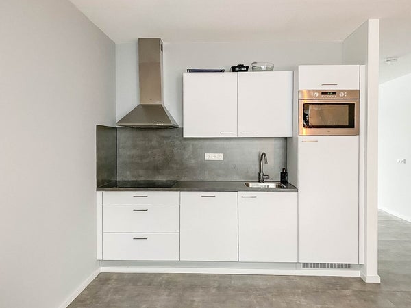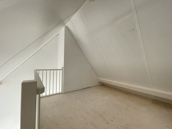 Hall d'entrée avec accès aux toilettes. Cellier avec de la place pour un lave-linge et un sèche-linge. Accès au salon, qui a un coin salon à l'avant et une cuisine spacieuse à l'arrière. La cuisine moderne est équipée de divers appareils encastrés ; hotte aspirante, plaque de cuisson à induction, four combiné-micro-ondes, lave-vaisselle et réfrigérateur. Des vélux de balcon ont été installés à la fois à l'avant et à l'arrière, offrant une sensation d'extérieur.