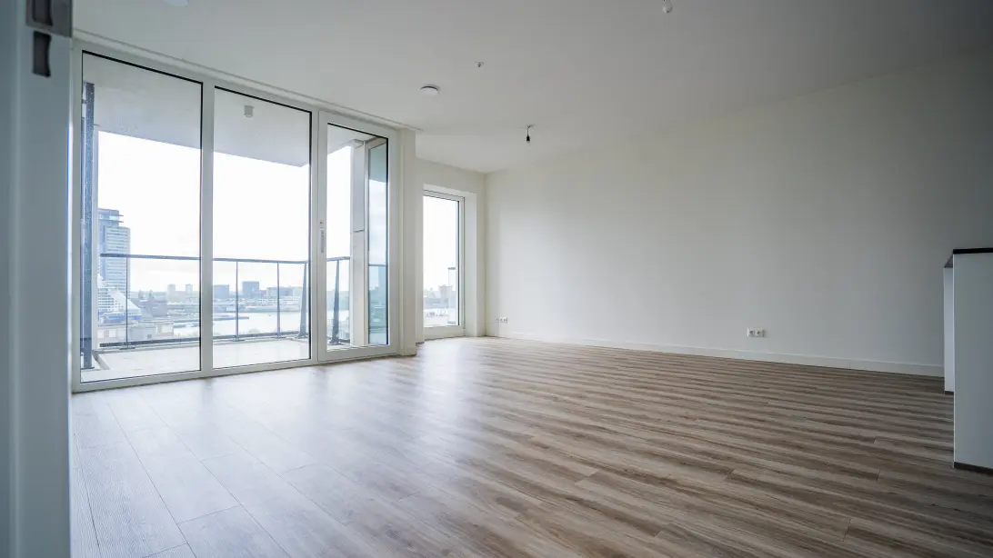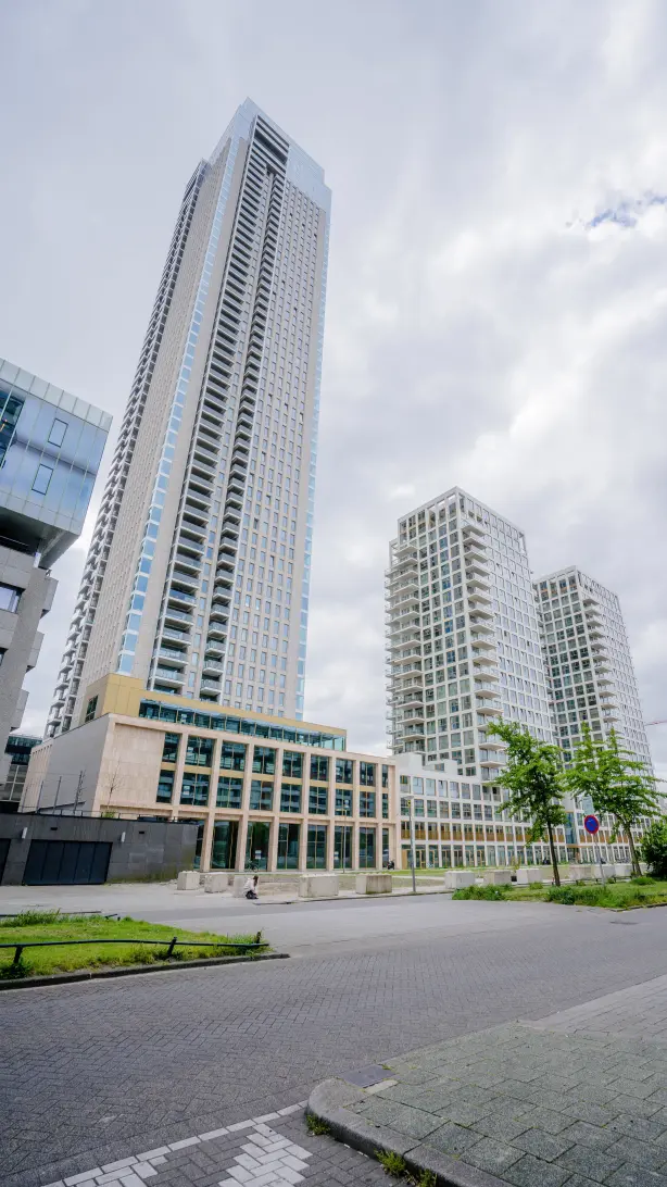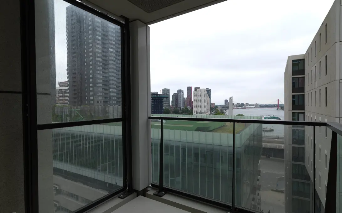 Le logement au Houtlaan 59 dans De Zalmhaven offre une expérience de vie luxueuse et confortable. Situé au 9ème étage de De Zalmhaven I, avec une superficie de 128 m², l'appartement dispose d'un salon lumineux d'environ 57 m² et de trois chambres allant de 9 m² à 17 m². La salle de bains luxueuse est équipée d'un double lavabo, d'une baignoire et d'une douche séparée. Deux balcons de 12 m² et 7 m² exposés au sud-est offrent un espace de vie supplémentaire. Le chauffage et le refroidissement sont gérés par des systèmes de sol. Une place de parking dans le garage souterrain peut être louée pour 185 € par mois. Les conditions de location exigent un revenu minimum de ****** € pour les ménages unipersonnels et des règles de location strictes. De Zalmhaven, conçu par des architectes réputés, comprend diverses résidences et espaces commerciaux.