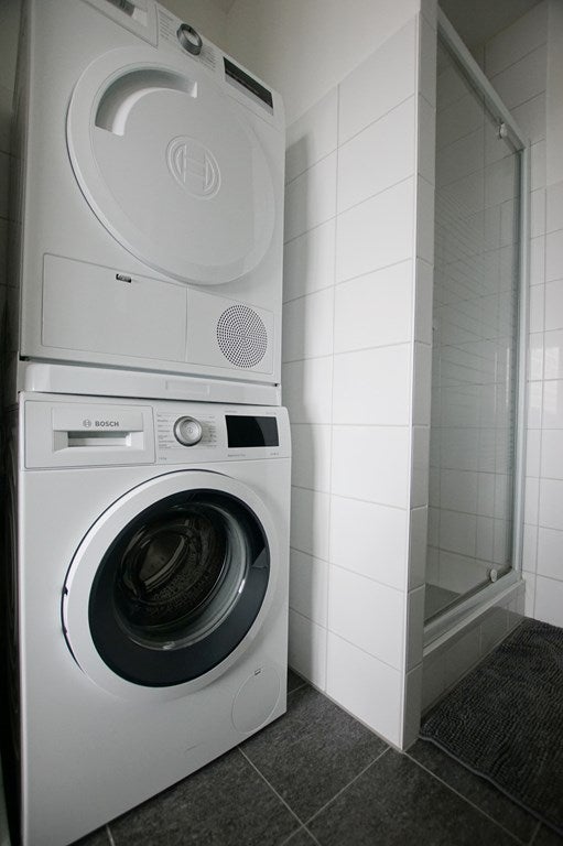 De la salle de séjour, vous accédez à la chambre de 12,5 m², qui peut facilement accueillir un lit, un bureau et une armoire. Atteinte à la chambre, la salle de bains privative est équipée d'une douche, d'un lavabo, d'un radiateur à serviettes et d'une toilette supplémentaire.