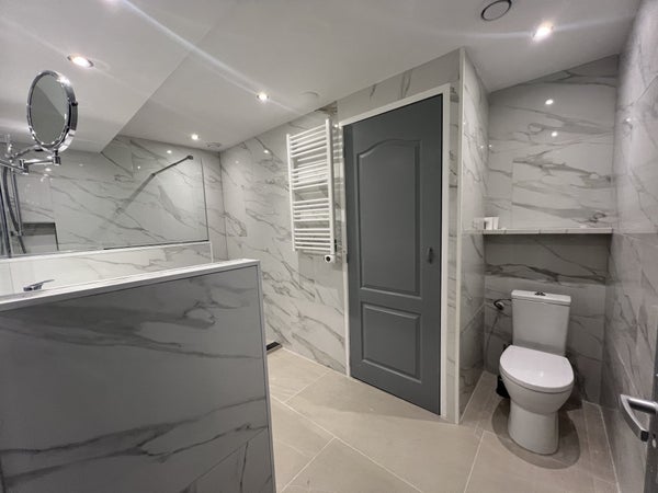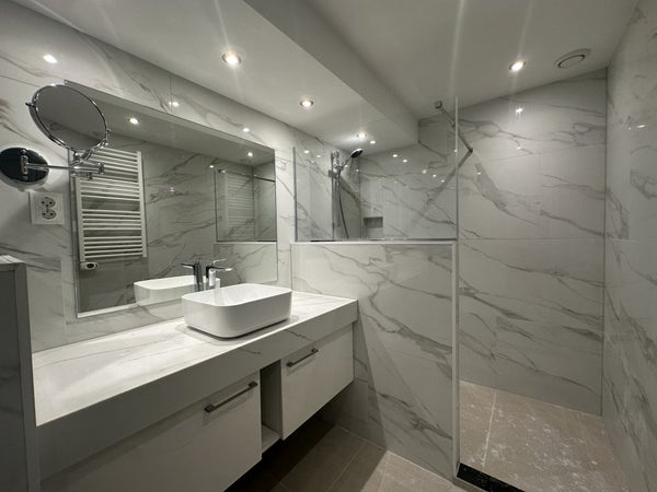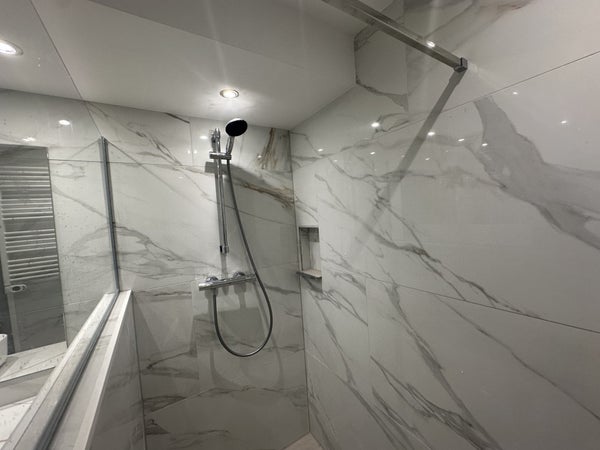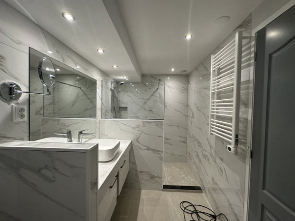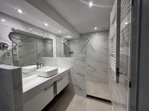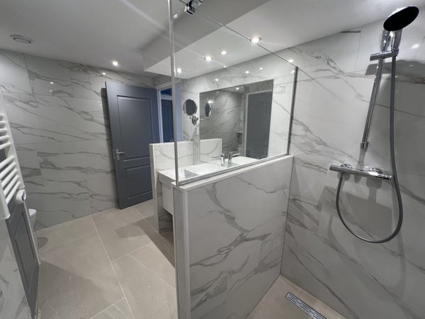 Un escalier vous mène à l'étage des couchages, où vous trouverez trois chambres très spacieuses. L'une des chambres donne accès à un balcon, idéal pour un moment de détente. La salle de bains luxueuse est finie dans des couleurs claires et dispose d'un toilettes, d'un lavabo avec meuble et d'une cabine de douche séparée.