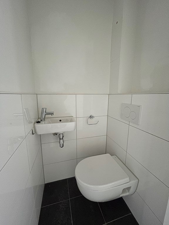 Hall contenant un toilette séparé et un lavabo. Depuis le hall, vous avez accès à la cuisine, au salon et aux deux chambres.