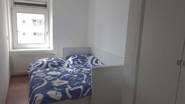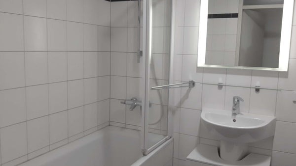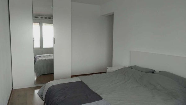 Une chambre lumineuse (12 m2) avec un lit double et une grande armoire. Deuxième chambre (9 m2) avec un lit double et un placard. Toutes les pièces sont lumineuses et offrent une bonne vue sur la Maas. Salle de bain avec baignoire, douche, lavabo et porte-serviettes, ainsi qu'un lave-linge. Toilettes séparées. Placard de rangement dans l'appartement pour aspirateur, planche à repasser, valises, etc.