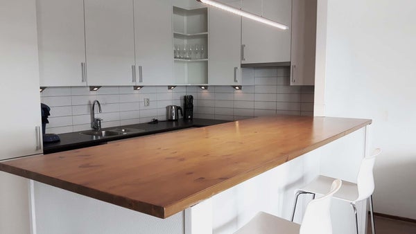 Spacieux et lumineux salon avec une vue directe époustouflante sur la Maas. Le salon donne également accès à votre balcon ensoleillé. La pièce est entièrement équipée avec un canapé, une table, des chaises, des placards, des lampes et une télévision. La cuisine ouverte entièrement équipée avec îlot est dotée d'appareils tels qu'un réfrigérateur, un congélateur, une plaque de cuisson avec hotte aspirante, un four et un micro-ondes.