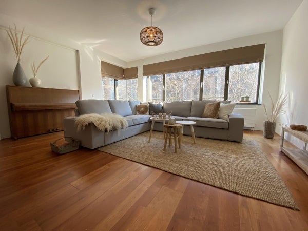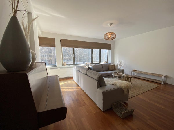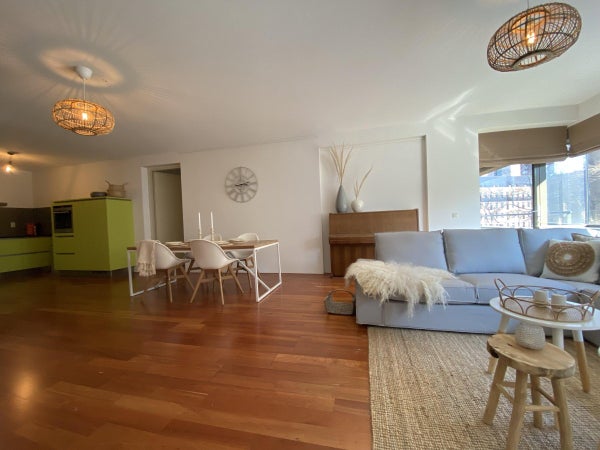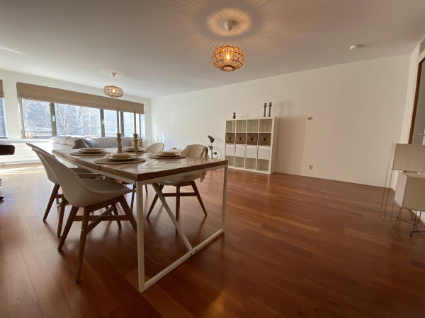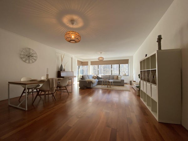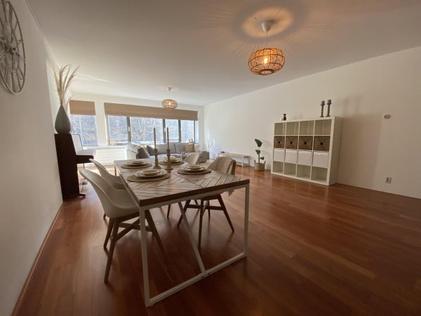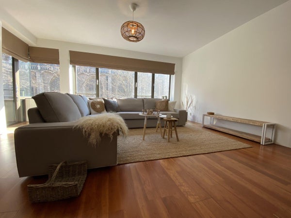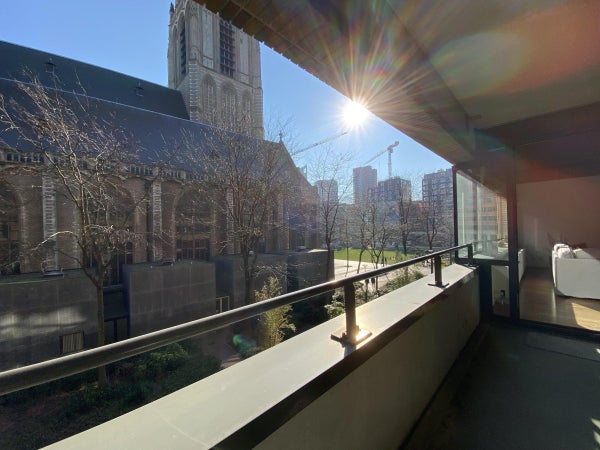 Ce qui attire immédiatement votre attention en entrant dans le salon, c'est la belle vue sur la Laurenskerk ; le seul vestige du centre-ville médiéval de Rotterdam. Le salon est suffisamment grand, ce qui se reflète dans l'espace de vie/salle à manger généreusement agencé.