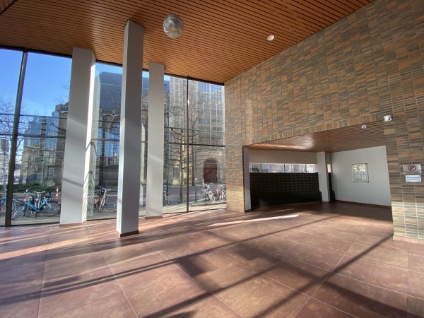 Une entrée centrale très spacieuse avec interphone et vidéophone. De cet espace, vous avez accès au beau jardin intérieur de 1 800 m2, aux ascenseurs, escaliers et au local à vélos commun.
