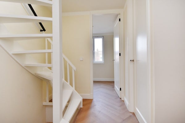 Vous recherchez un luxueux nouvel appartement situé au 1er et au demi 3e étage ? Cet appartement est situé dans le cool Nieuwe Westen et dispose de 96 mètres carrés de confort de vie, répartis sur deux niveaux. Un salon avec cuisine ouverte équipée d'un refroidisseur à vin et d'un robinet Quooker. Le bien possède trois grandes chambres dont la chambre principale dispose d'une salle de bain agréable avec douche à l'italienne et double lavabo au 1er étage, et au 3e étage se trouvent les deux autres chambres avec une salle de bain séparée équipée d'une douche à l'italienne, d'un lavabo et de toilettes. L'appartement dispose d'un balcon arrière accessible depuis le salon, mais aussi d'une agréable terrasse sur le toit. Le bien vient d'être rénové et possède un label énergétique A !