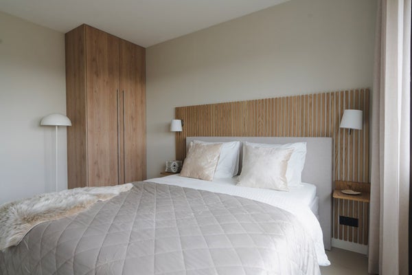 La grande chambre comprend un lit double confortable et un espace de rangement suffisant, vous permettant de vous installer facilement. La pièce est soigneusement meublée et conçue pour créer une atmosphère relaxante. Il y a aussi une deuxième chambre pour des invités ou pour travailler à domicile.