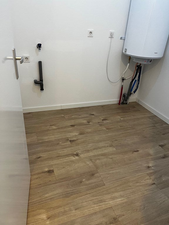 À l'étage, vous trouverez un palier spacieux avec des toilettes séparées, un espace de rangement et une salle technique séparée, y compris le branchement pour la machine à laver. Le séjour est exceptionnellement spacieux et lumineux grâce à de nombreuses fenêtres. Les rideaux sont finement réalisés (top-down/bottom-up) et par les portes-fenêtres, vous pouvez accéder à la terrasse sur le toit : un bel prolongement du salon où vous pouvez vraiment vous asseoir à l'extérieur.