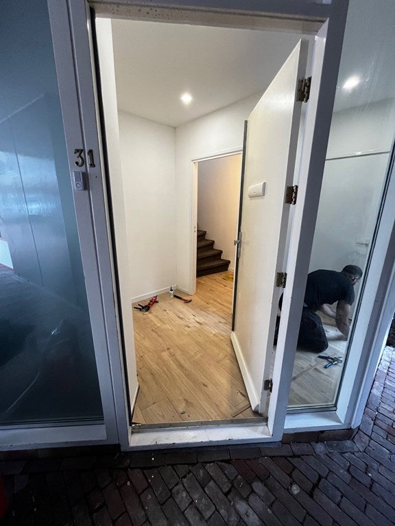 Vous entrez par votre propre entrée au rez-de-chaussée avec un vestiaire et un tableau électrique. De là, des escaliers mènent à l'étage de vie.