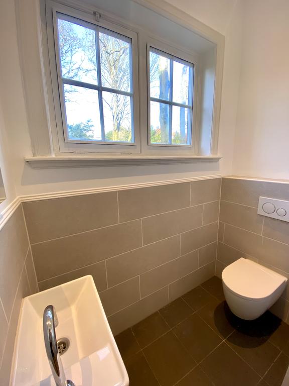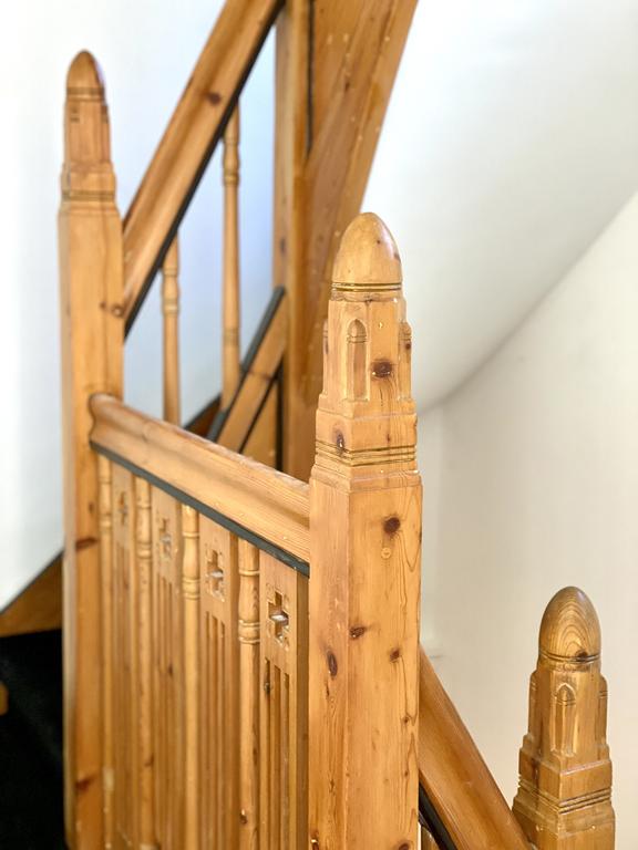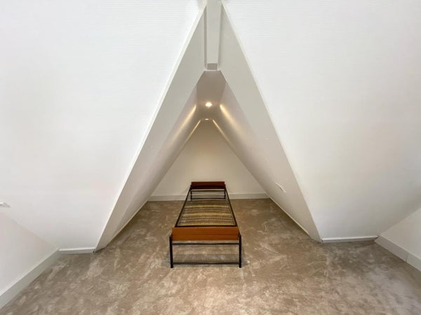 En el primer piso hay dos amplias habitaciones y una tercera habitación más pequeña para dormir o trabajar. En una de las habitaciones amplias hay espacio para un armario empotrado. Este piso también alberga el baño decorado con lujo, que cuenta con una ducha a ras del suelo, inodoro y una agradable bañera para relajarse después de un largo día de trabajo.