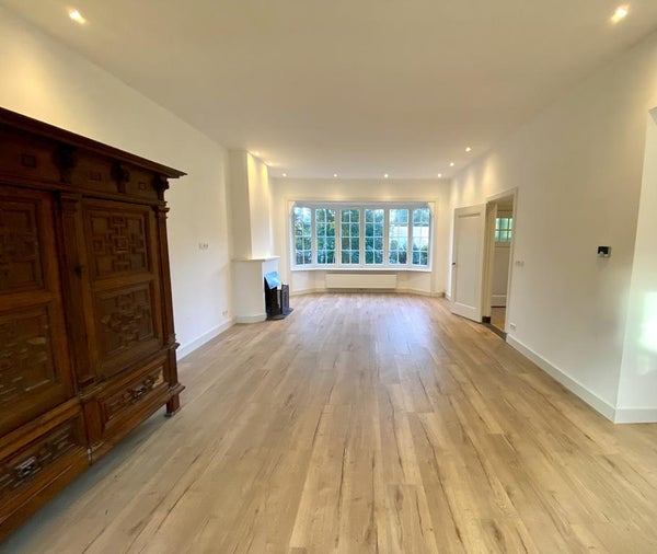 A través del jardín delantero, que tiene una fuente elegante, llegas a la entrada de este edificio majestuoso. La primera impresión de esta maravillosa villa es abrumadora. Te encuentras primero con un amplio y luminoso vestíbulo. Aquí destaca la escalera con su original pasamanos de roble. En este vestíbulo también encontrarás el moderno baño con lavabo. Desde el vestíbulo, entras en la sala de estar de generosas dimensiones, adyacente a una cocina semiabierta. Esta cocina completamente nueva está equipada con todas las comodidades, incluidos varios electrodomésticos integrados. Un lavavajillas, una placa de cocina cerámica con función de extracción, un horno combinado Bauknecht y, por supuesto, una combinación de frigorífico/congelador empotrado. Incluye un nuevo juego de utensilios de lujo. A través de las puertas francesas, accedes directamente a la terraza, lo que permite un desayuno, almuerzo o cena en el jardín en un abrir y cerrar de ojos. ¿Hace demasiado frío afuera? La chimenea proporciona un ambiente cálido en la sala de estar; ¡literal y figurativamente! Lo que destaca en la casa son las numerosas ventanas que permiten una gran entrada de luz natural, haciendo que el amplio espacio habitable sea un conjunto maravillosamente luminoso y fresco. Además de la hermosa ventana salediza, se han conservado varios detalles originales en la casa, creando un hermoso juego de características rústicas y acabados modernos.