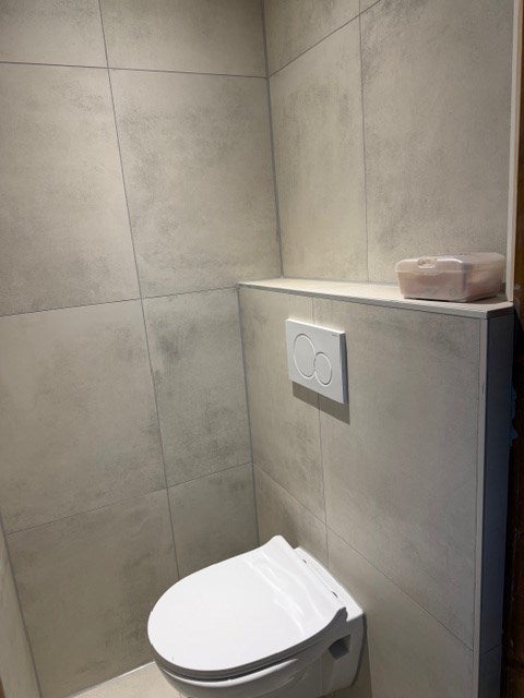 Entrada, sala de estar con suelo de parqué, chimenea decorativa, acceso a la cocina con armario de bodega, pasillo trasero con conexiones para electrodomésticos, baño, baño equipado con ducha y lavabo.