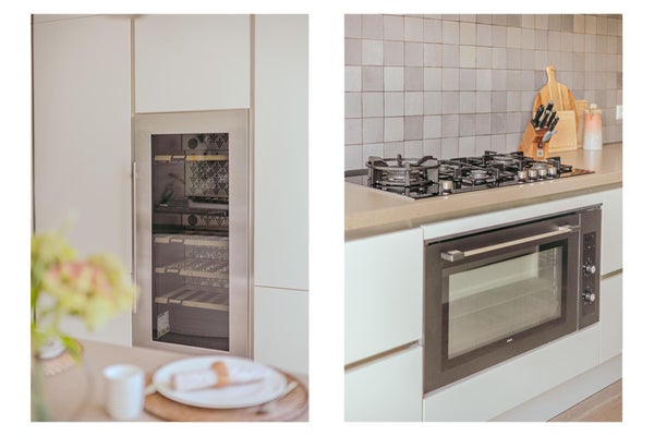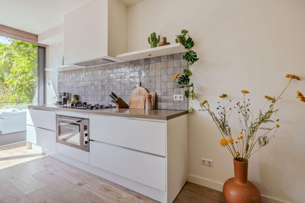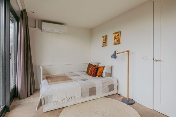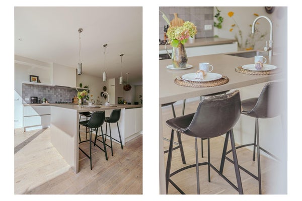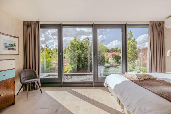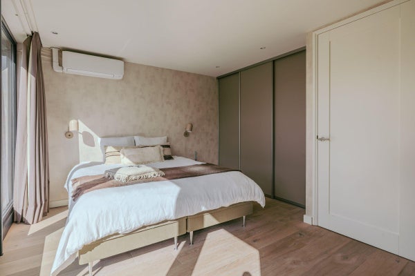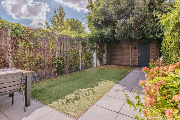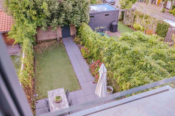 A través del jardín delantero con un agradable sol de la mañana, accedes a la puerta de entrada de la casa. Hall con aseo separado y acceso a la sala de estar con preciosa chimenea de gas en la parte delantera y amplia cocina de planta abierta en la parte trasera. La lujosa cocina está equipada con todos los electrodomésticos integrados deseados, incluyendo frigorífico, congelador, horno, una placa de cocina de gas con extractor, un armario climatizado para vino incorporado y, por supuesto, ¡un grifo con Quooker! Desde la cocina, accedes al jardín trasero a través de un gran ventanal que da al soleado oeste, donde podrás disfrutar del sol toda la tarde y la noche. En el jardín se ha creado un acogedor rincón de lounge y un área de comedor para cócteles y barbacoas. Desde la sala de estar, accedes a la primera planta por la escalera, donde se encuentra el amplio dormitorio principal situado en la parte trasera. Este dormitorio cuenta con un gran armario, una cómoda cama doble y aire acondicionado. Una segunda habitación está situada en la parte delantera, actualmente configurada como habitación infantil y equipada con una litera y un gran armario empotrado. En esta planta también hay un lujoso baño que cuenta con una maravillosa ducha a ras de suelo, mueble lavabo y un segundo aseo. Escalera hacia la segunda planta donde se encuentra un gran tercer dormitorio que actualmente está decorado como habitación de invitados y/o espacio de trabajo. Esta habitación también cuenta con aire acondicionado. A través del pasillo llegas al espacioso segundo baño que está equipado con bañera, ducha separada, mueble lavabo y un tercer aseo. Detrás de una puerta se encuentran la lavadora y el secador. Toda la casa cuenta con suelos de madera y calefacción por suelo radiante.
