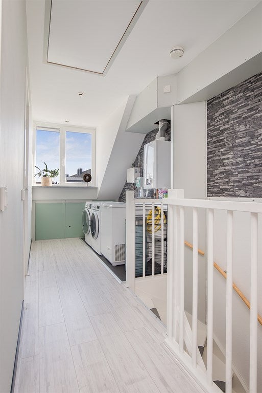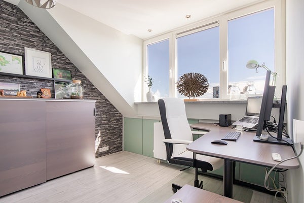 El ático cuenta con una habitación adicional que se puede utilizar como oficina en casa, sala de hobby o dormitorio. Esta habitación tiene conexión de internet, un tragaluz con una pantalla eléctrica, y un armario con puertas correderas (300 x 210 x 60 cm). También hay disponible una conexión para la lavadora.