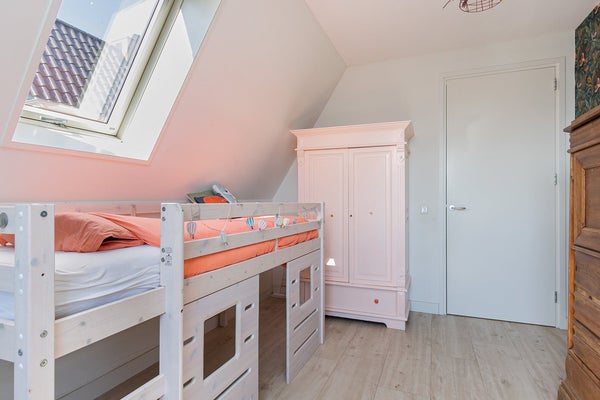 A través del vestíbulo, se accede al salón con cocina abierta. El hermoso jardín se puede acceder a través de grandes puertas de cristal. En el vestíbulo hay un baño separado. En el primer piso hay 3 dormitorios, el cuarto está en el ático de la casa. El baño está equipado con bañera, mueble lavabo y una ducha a ras de suelo muy amplia. La vivienda está bien aislada y tiene una etiqueta de energía favorable. Junto a la puerta de entrada hay un amplio cobertizo que proporciona suficiente espacio para bicicletas (de carreras) y otros equipos deportivos como tablas de paddle o de surf.