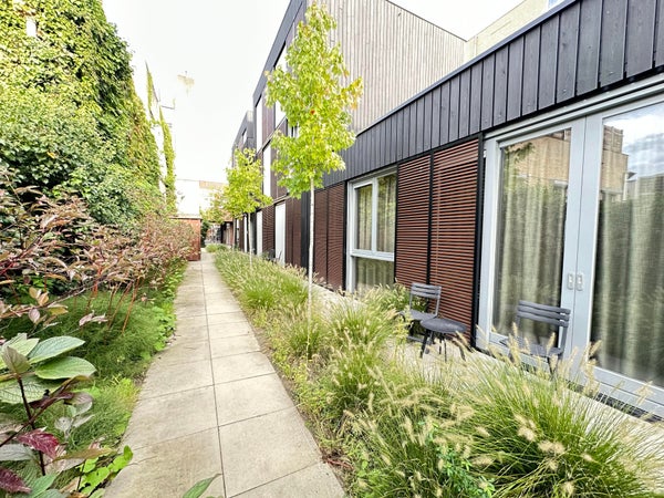 Jardín: Jardín privado soleado orientado al oeste con pavimentación, bordes de jardín, varias terrazas y pérgola. Cobertizo con acceso cubierto al jardín trasero. Esto hace que la parte trasera sea libremente accesible para motocicletas y ideal para cargar y descargar.
