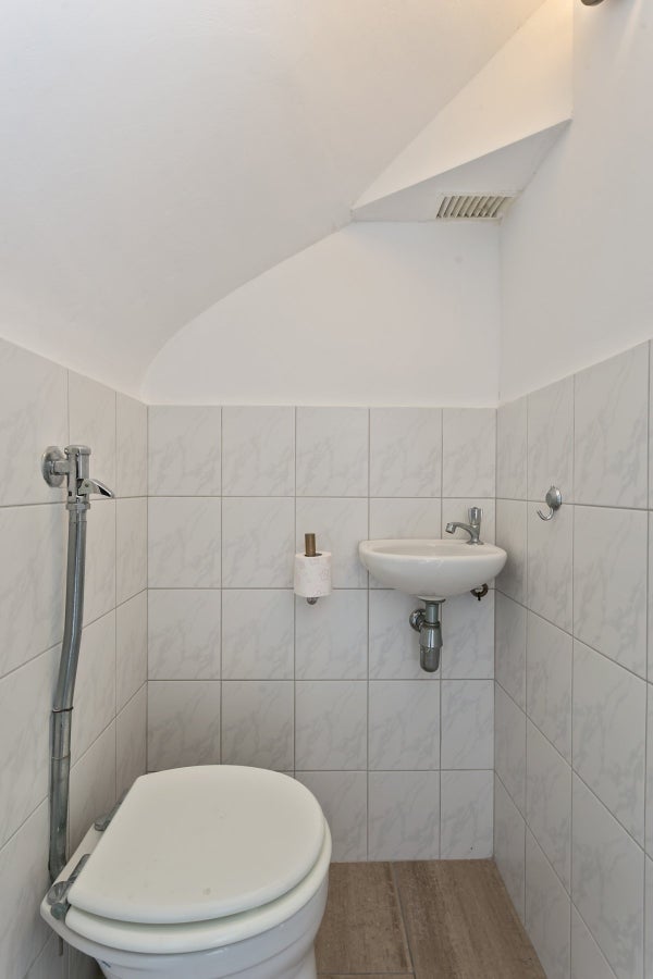 Altillo con espacio de almacenamiento bajo el techo y conexión para la lavadora. Habitación de almacenamiento separada con caldera HR y tragaluz.