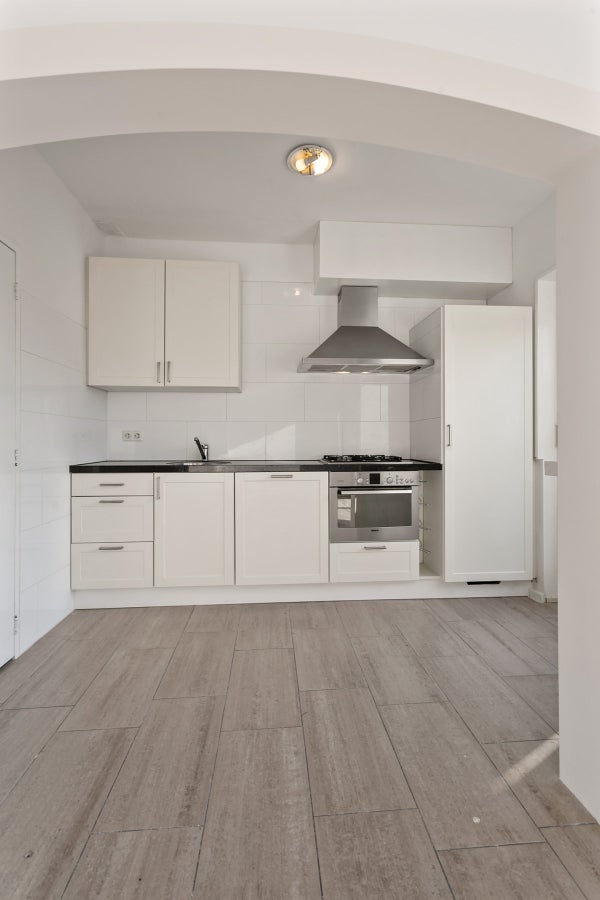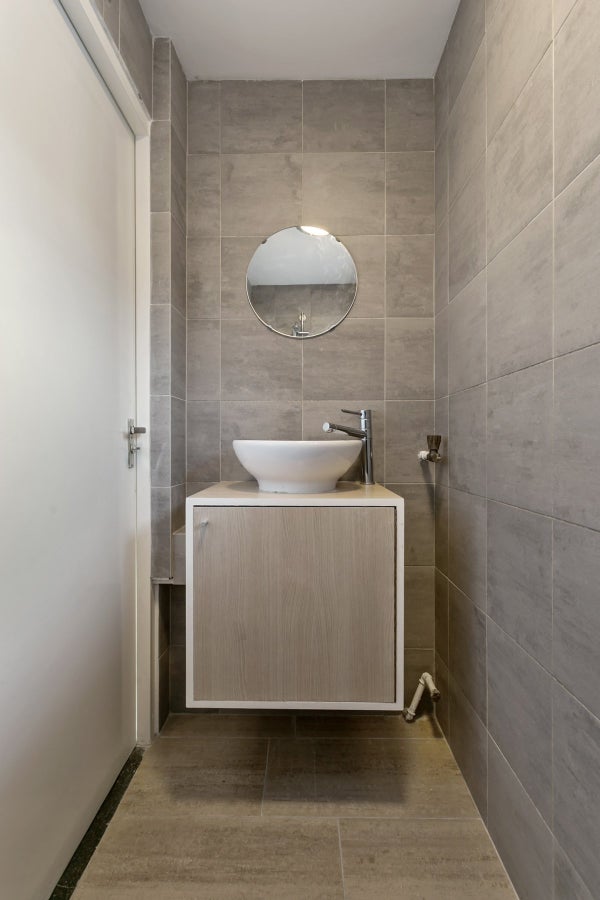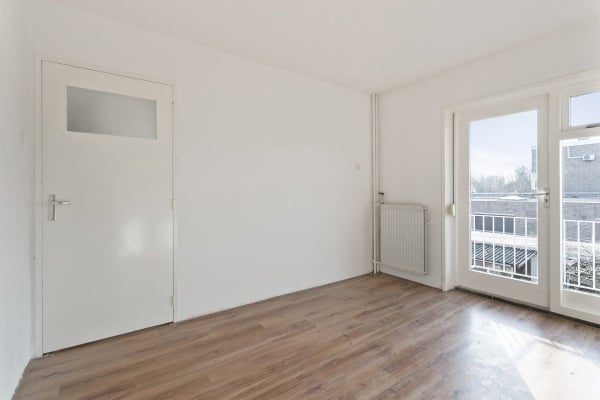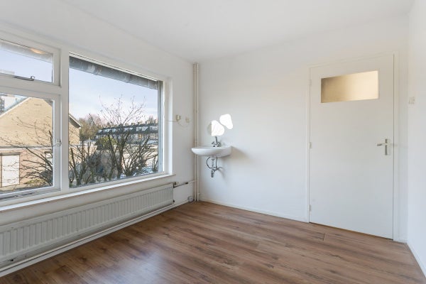 Dormitorios: Amplio dormitorio en la parte delantera (aprox. 2,90 x 3,50 m1) con lavabo, buena luz a través de las grandes ventanas y vistas despejadas. Segundo dormitorio espacioso (aprox. 3,50 x 3,50 m1) ubicado en la parte trasera con puerta a un balcón soleado. Tercer dormitorio soleado (aprox. 2,10 x 2,30 m1), también situado en la parte trasera, con vistas a la franja comercial en la Elckerlyclaan. Todos los dormitorios tienen paredes/techos enlucidos y suelos de laminado.