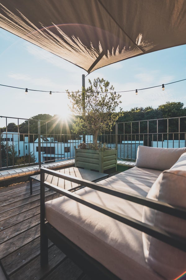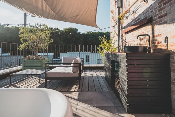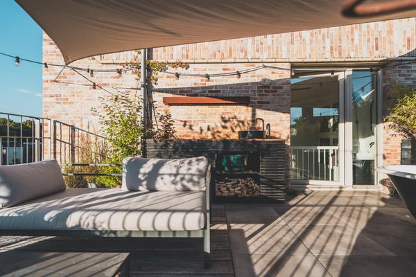 La terraza de la azotea (orientada al suroeste) es un verdadero punto de atracción y ofrece la oportunidad de disfrutar de la vida al aire libre bajo el sol de la tarde. A través de la vegetación se garantiza la privacidad, y la deseada cocina exterior lo convierte en un paraíso único en verano.