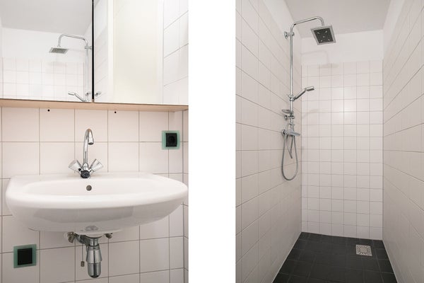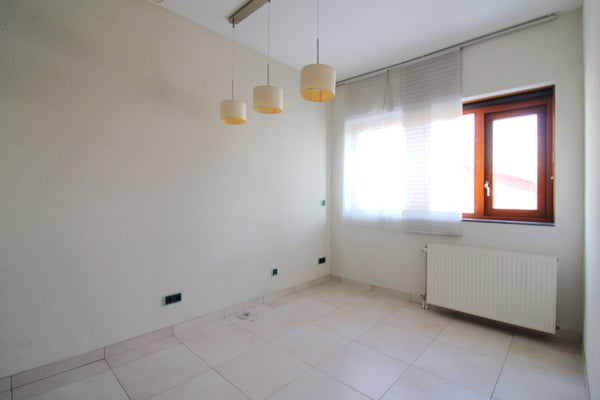 Desde el distribuidor del segundo piso se accede a 2 dormitorios y al segundo baño. Ambos dormitorios están equipados con suelo laminado. El baño está alicatado y cuenta con bañera, inodoro suspendido y lavamanos. También se encuentra en este piso la relajante terraza en la azotea con nuevas tablas. Aquí puedes disfrutar tranquilamente del buen tiempo.