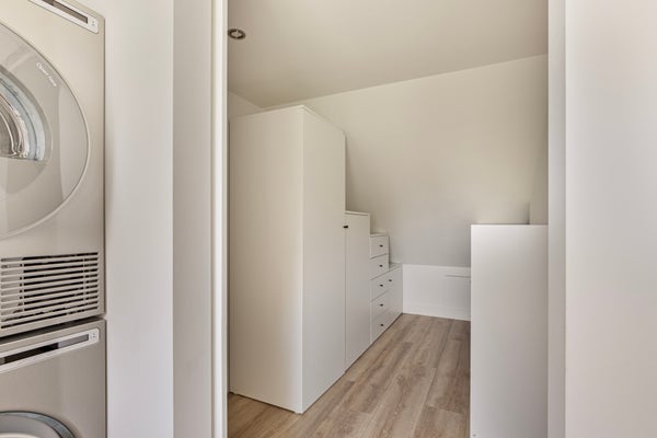 En el primer piso se encuentran dos amplias habitaciones y un vestidor, así como un lujoso baño con bañera, ducha separada, lavabo doble y un segundo aseo. El segundo piso ofrece una tercera habitación y un espacio separado con lavadora y secadora.