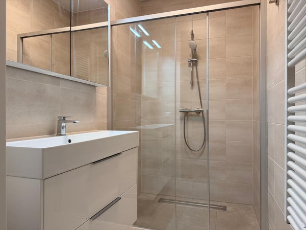 Planta baja: Entrada en el pasillo de la casa, donde se encuentran el baño separado y las escaleras que conducen al primer piso. Acceso a la sala de estar, que tiene grandes ventanas en ambos lados, lo que hace que el espacio sea maravillosamente luminoso. En la parte delantera de la casa está la cocina semiabierta, equipada con varios electrodomésticos integrados, a saber; combinación de frigorífico/congelador, horno, placa de inducción con campana extractora integrada y lavavajillas. Desde la sala de estar, se puede acceder al jardín trasero soleado con trastero (para bicicletas). La casa está completamente equipada con calefacción por suelo radiante.