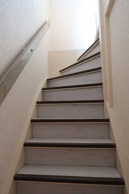 A través de las escaleras en el vestíbulo se accede a los pisos superiores;