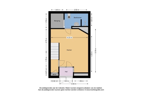 En la planta baja hay una amplia habitación/espacio que se puede utilizar a su gusto. Desde aquí, se accede al baño y a las escaleras hacia el primer piso.