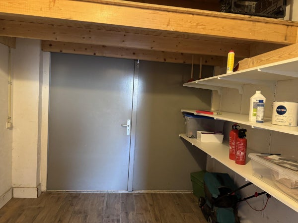 Detrás de la cocina hay un cuarto de servicio adicional con aún más espacio de almacenamiento práctico y un segundo frigorífico/congelador y un bloque de cocina adicional. A través del cuarto de servicio también llegamos al trastero de la vivienda y por el otro lado accedemos al jardín, que cuenta con una casa de juegos y una cama elástica y ofrece además mucha privacidad.