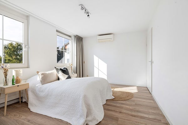 Ubicada en una calle tranquila, verde y apta para niños, esta espaciosa y luminosa casa esquinera ofrece cuatro dormitorios, dos baños, una generosa cocina-comedor y una soleada terraza directamente sobre el agua. La casa se ofrece completamente amueblada, incluyendo una gran mesa de comedor, sofá en esquina, dos elegantes sillones, microondas, lavadora, secadora, refrigerador adicional y una cama doble abatible en el dormitorio 2.