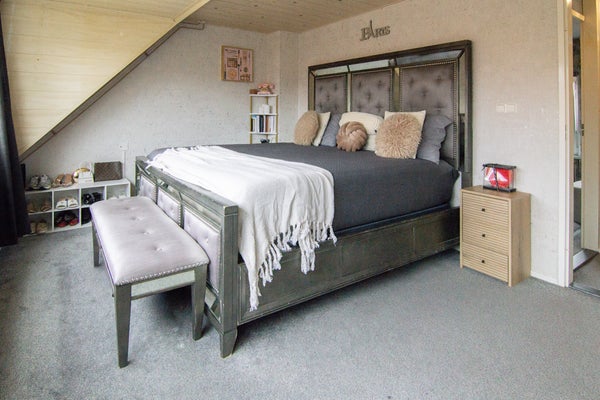 Desde la cocina, accedes al garaje completamente aislado, que está equipado con una puerta eléctrica. Desde el garaje también puedes acceder a la habitación de arriba, que actualmente se utiliza como dormitorio.