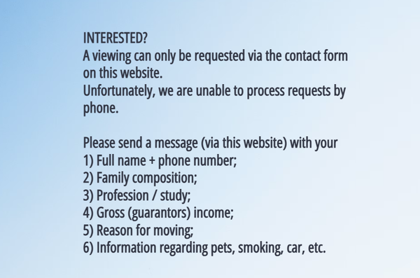 • Requisitos de ingresos: al menos aproximadamente 3x el alquiler bruto/eventualmente a través de un garante;