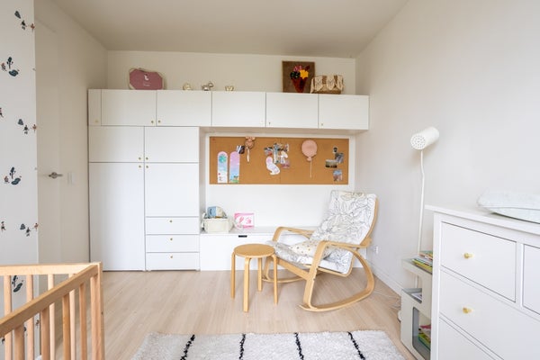 En el primer piso hay un amplio dormitorio y un segundo dormitorio, actualmente configurado como habitación de bebé, pero, por supuesto, totalmente personalizable a su gusto. El moderno baño dispone de bañera y ducha.