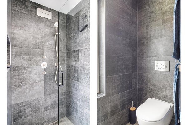 Distribuidor, dos grandes dormitorios, uno con cama doble, baño equipado con amplia ducha a ras de suelo, lavabo y aseo.