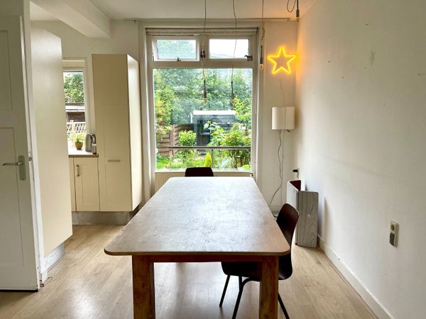 Meidoornstraat 3, Zaandam es una casa de fila unifamiliar con un jardín delantero y un gran jardín trasero orientado al norte con una amplia terraza, habitaciones luminosas (una sala de estar abierta y 4 dormitorios), tres armarios empotrados y dos baños. La casa está aislada (aislamiento de pared, piso y techo) y tiene paneles solares y una nueva caldera de bajo consumo, manteniendo los costos de energía bajos.