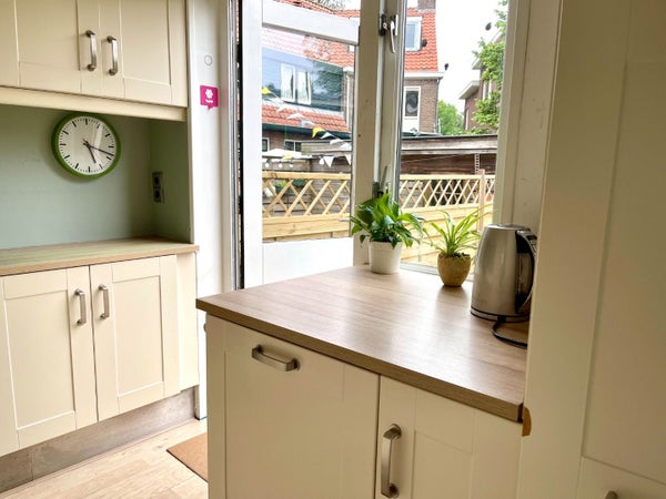 Se encuentra en una tranquila calle residencial en el barrio Boombuurt de Zaandam, a solo un corto trayecto al centro de Ámsterdam: 20 minutos en autobús hasta la estación de metro de Ámsterdam Noorderpark o 10 minutos en autobús o bicicleta hasta la estación de Zaandam, con conexiones a Ámsterdam cada pocos minutos. El centro de Zaandam (a 20 minutos a pie o un corto trayecto en bicicleta/autobús) ofrece oportunidades de compras esenciales (Blokker, Hema, Etos), y hay un mercado todos los jueves y sábados con una amplia variedad de quesos, productos frescos y una fantástica panadería.