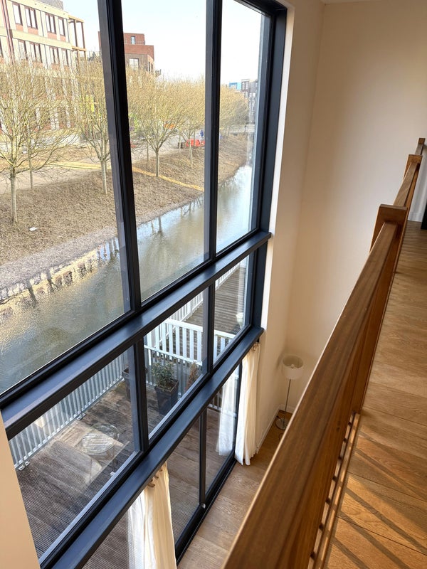 Attraverso la grande apdonda scorrevole nel soggiorno, si accede direttamente al terrazzo/pontile di circa 15 m². Questa terrazza è splendidamente sopra il canale e forma un luogo unico per sedersi all'aperto. Qui puoi goderti con calma la vista sull'acqua, una tazza di caffè al mattino o un drink alla fine della giornata. Grazie alla connessione diretta con il soggiorno, la terrazza si sente come un'estensione dello spazio vitale, creando una transizione fluida tra interno ed esterno.