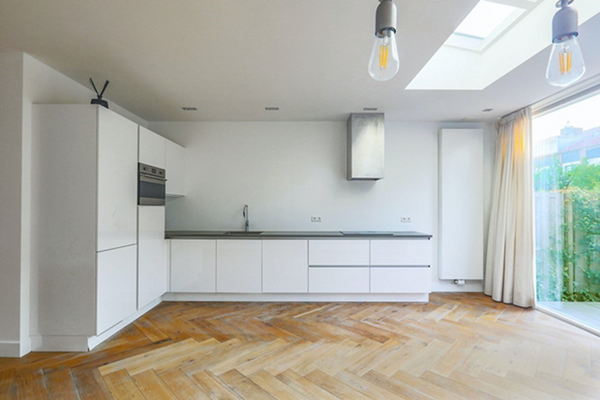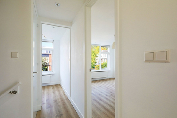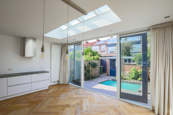 La prima cosa che colpisce non appena si entra nel soggiorno con zona pranzo e cucina sul retro è la quantità di spazio e luce causati dalle due estensioni sul davanti e sul retro. Il piano aperto è facile da arredare. Immagina un grande tavolo da pranzo parallelo alla lussuosa cucina, dove puoi gustare il tuo pasto e vino preferiti. Le grandi porte a doppio battente sul retro si aprono verso il giardino, che crea un'esperienza straordinaria all'aperto mentre sei all'interno. Il giardino è di 35 m2 e si affaccia a ovest, quindi ti garantisce molta luce e sole. Nel giardino si trova anche una piccola casetta da giardino, ideale per riporre le biciclette.