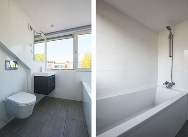 Al primo piano troverai la camera da letto matrimoniale e una spaziosa seconda camera. Qui troverai anche una terza camera che può essere utilizzata come lavanderia e/o piccola camera da letto. Il bagno elegante è dotato di una doccia a filo pavimento e un lavabo doppio, il secondo bagno si trova separatamente.