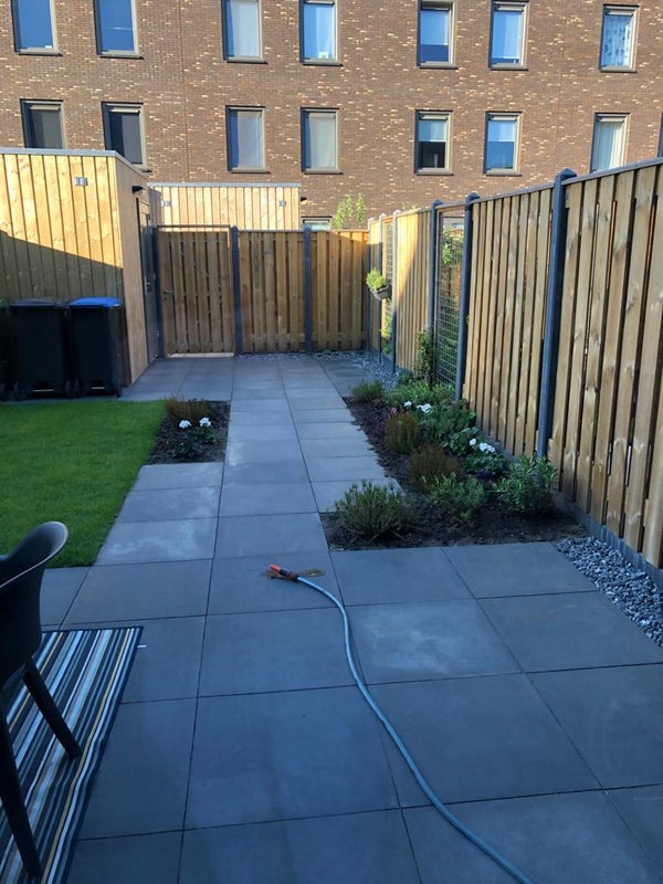 Dietro la casa si trova il giardino ornamentale arredato di 11 metri di profondità, incluso un capanno. Il giardino sul retro è circondato da una recinzione ed è inoltre accessibile dal retro tramite un cancello (con serratura).